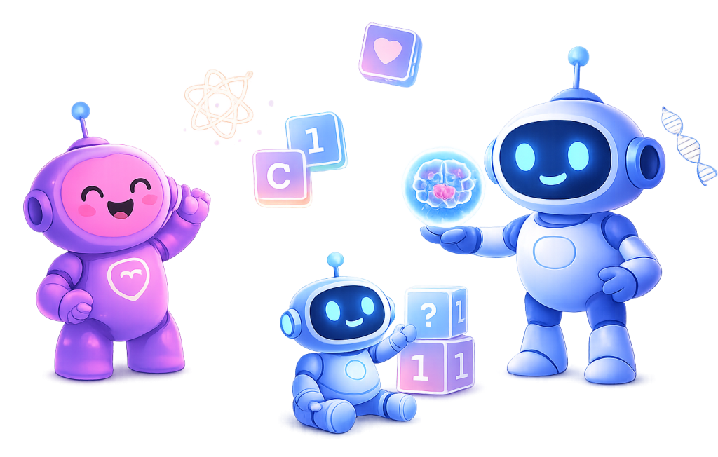 Botsey and Lux grow with your baby, adapting to their age and development. They inspire curiosity, encourage learning, and support families with calm, safe, and thoughtful AI guidance.